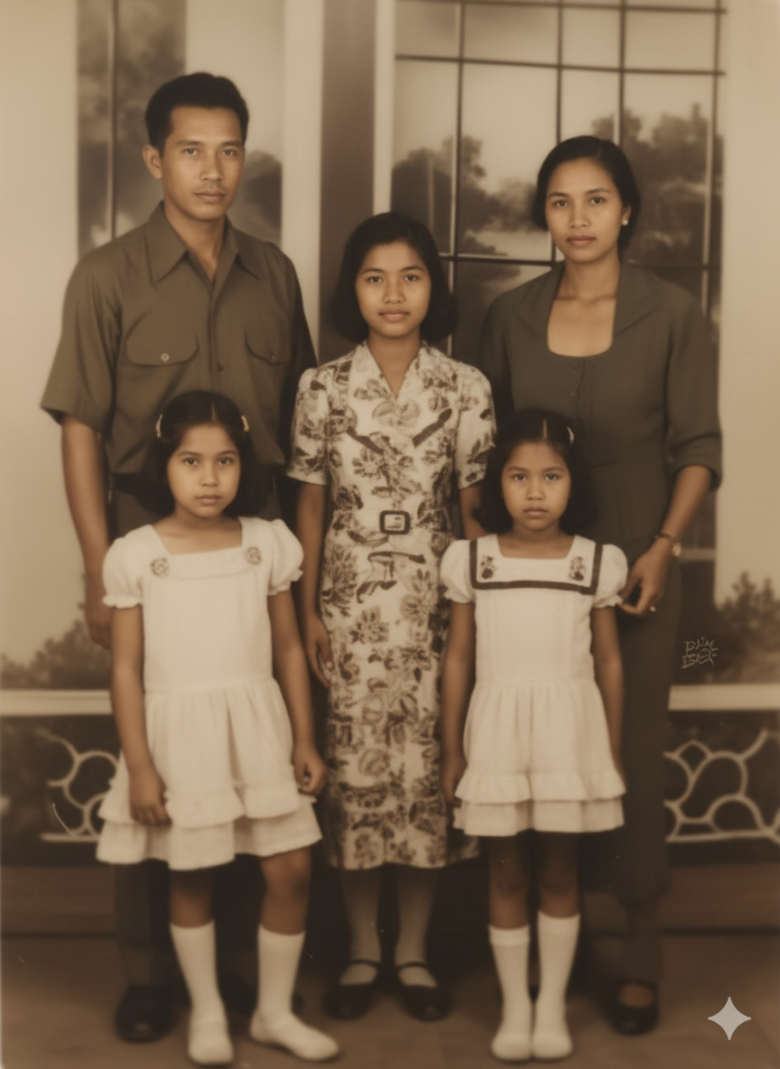 Restore old photos into high-quality, professional studio-style portraits. Enhance facial, skin, and clothing details for a natural, sharp, and modern look. Remove noise, scratches, or any damage from old photos.