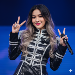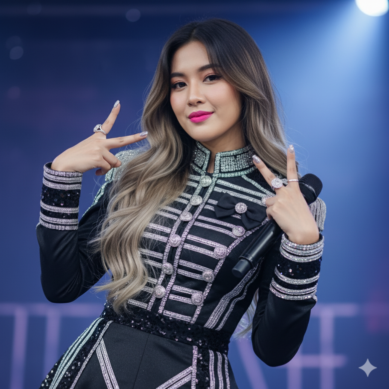 Mood & Atmosphere:Stage or entertainment-show atmosphere — energetic, cheerful, and glamorous.The mood is bright and positive.The photo atmosphere feels professional, with lighting prepared specifically for a live performance.