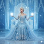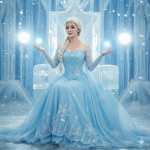 Key Light: From the upper left front, slightly above Elsa’s eye line, accentuating facial features and dress details.