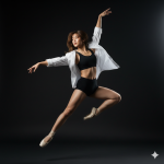 Mood / AtmosphereDynamic, powerful, elegant, and artistic.The contrast between the structured dancer’s outfit and the flowing white shirt creates a blend of discipline and freedom—a fusion of motion and serenity.