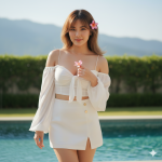 Mood/Atmosphere: The overall mood is serene, ethereal, and subtly alluring. There’s a sense of delicate beauty and tranquility, as if captured in a perfect moment of a warm, idyllic day. The atmosphere is calm and inviting, with a hint of romanticism.